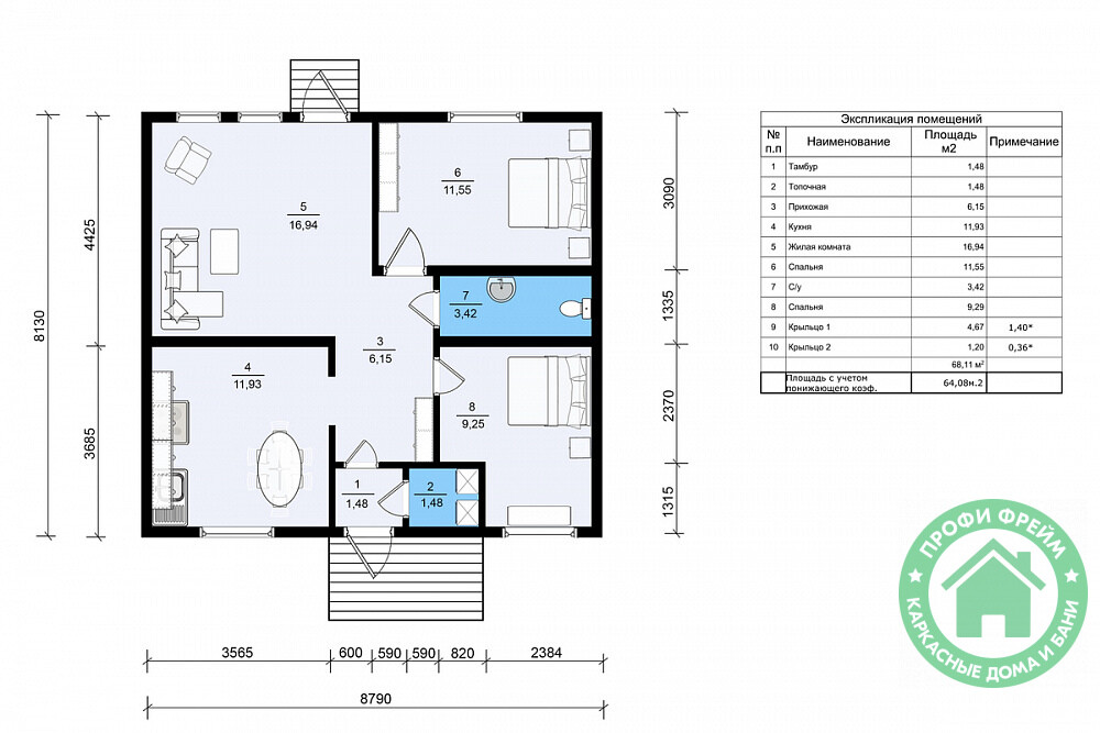 Размер: 8,8 х 8,1 м