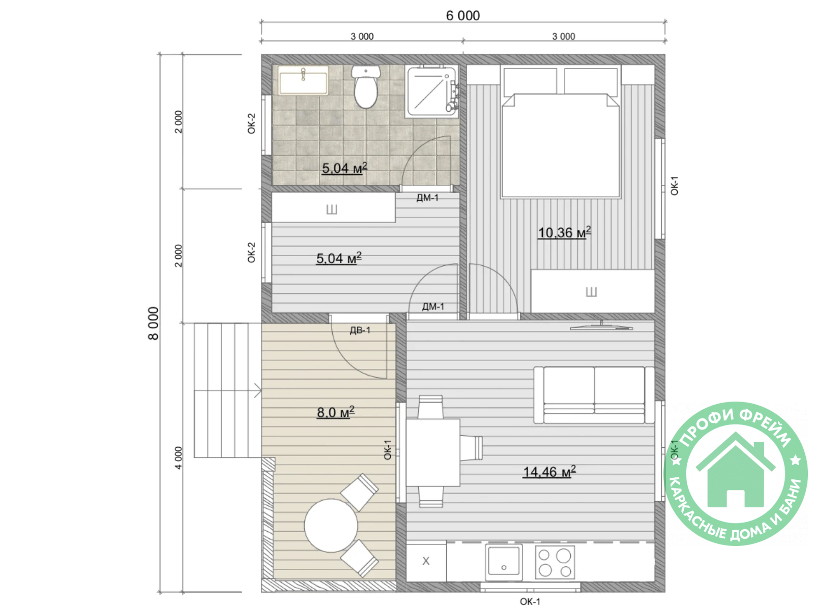 Общая площадь: 48 м2