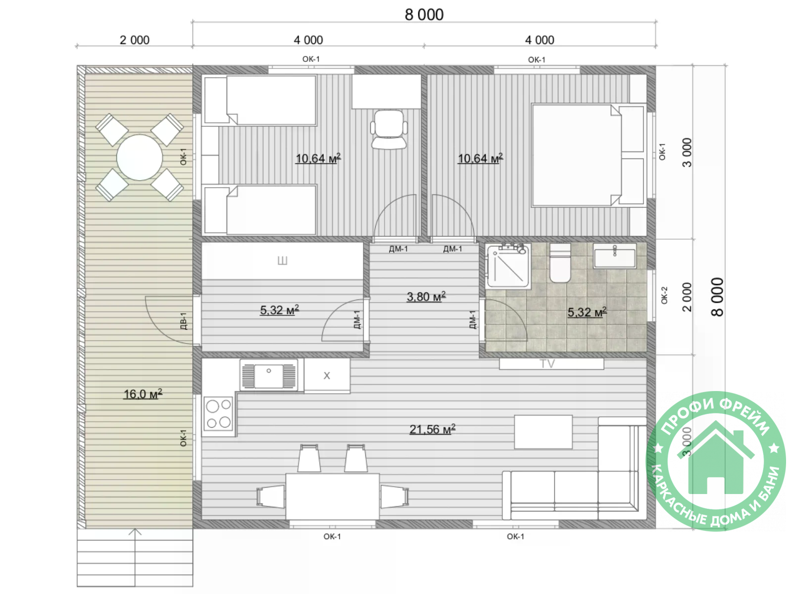 Общая площадь: 80 м2